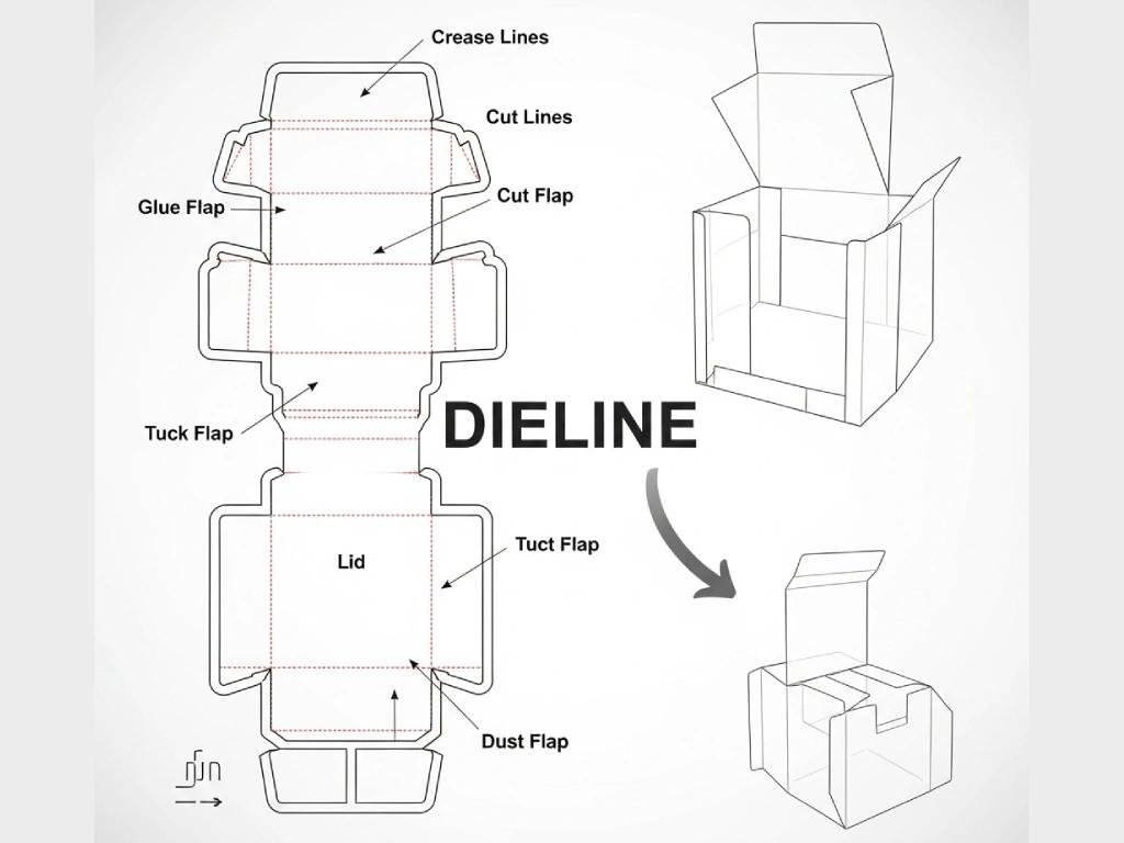 A dieline is the technical blueprint of packaging boxes. It defines: